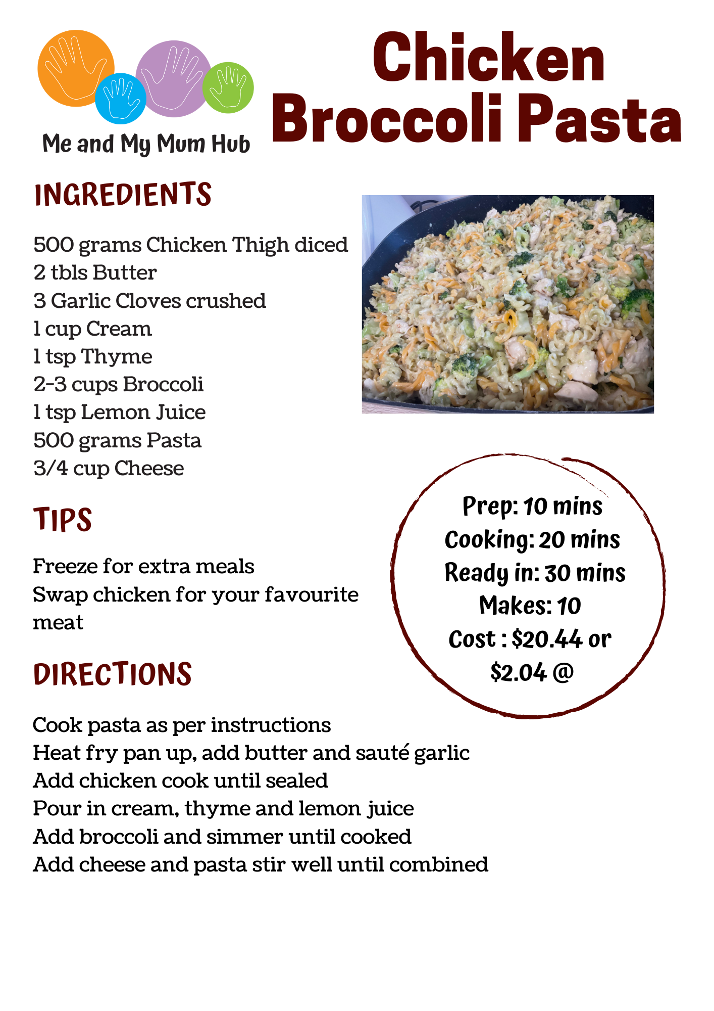 The Chicken and Broccoli Pasta Bake is the ideal meal when your short on time but you want a delicious meal. This can be eaten straight up or sprinkle bread crumbs and cheese into and bake in the oven. It is very adaptable; you can customise it to suit your taste or what you have on hand. If you don’t like broccoli, use something else. Peas or pumpkin would be good choices.