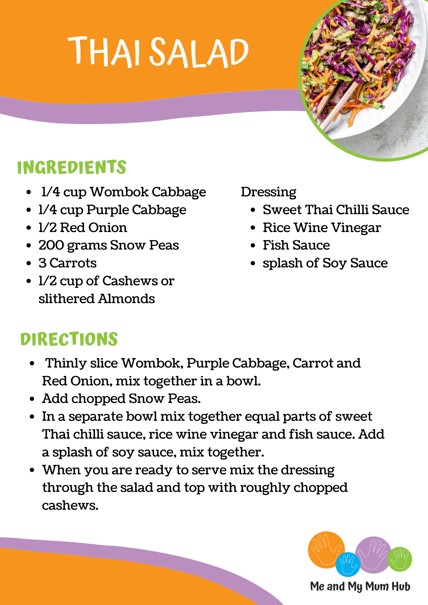 Recipe - Thai SaladShannan SheahanMar 20, 20241 min readThis was a super easy, fresh tasting salad. It was yummy way to eat a range of different coloured vegetables. Click here for PDF version for easy printing.